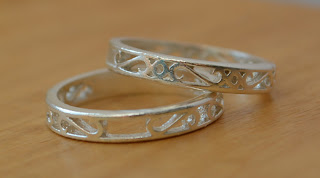 There are also some disadvantages to CAD designs. The main one, right now, is a limitation of the printing and casting process. You cannot get as much detail with a casting as you can when you work directly in the metal. Consider the little filigree pendants I’ve been selling lately. Those were made in the 1920s, some are stampings (where the metal is stamped out directly and the design imprints itself onto the metal), others have tiny millgrain that is applied with a special tool. For a wax model to capture a design, it has to be about 1/3mm deep, which means that some engravings and textures don’t show.