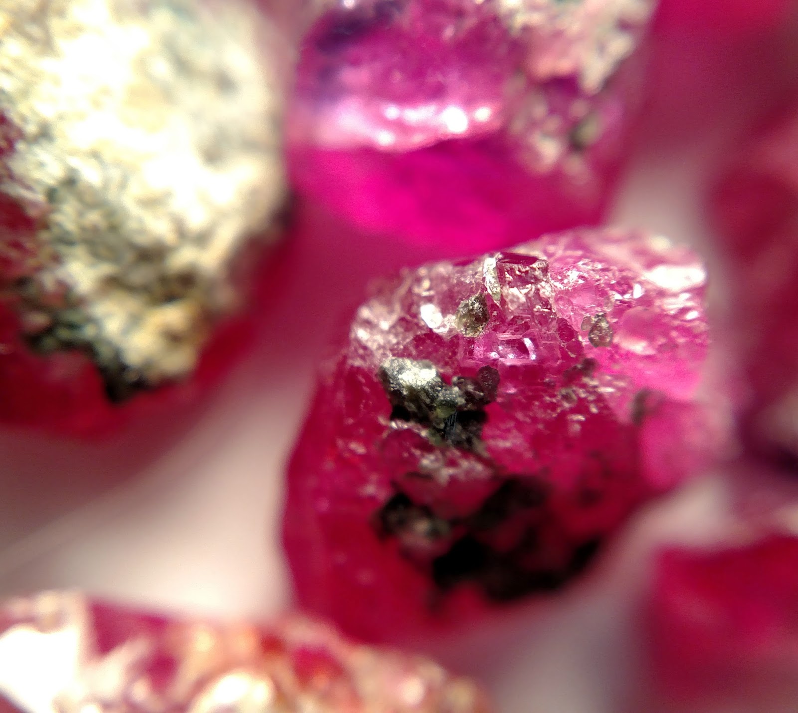 Yvonne examines a parcel of Winza sapphires for cuttable material.