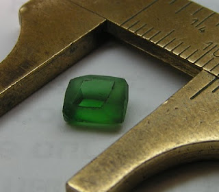 Speaking of kind persons, my gemstone dealer D., who is also a lapidary artist, picked out a beautiful clean piece from his tsavorite rough for a little demo. As those of you who follow my Etsy listings know, it’s been very hard for me to get tsavorite. D. only has rough, and would have to ship it to India to have it cut, which would take months. I’ve seen other parcels on the street, but they’re prohibitive in cost. I know of one dealer in Jersey who has his own rough cut in India (rather than purchasing finished stones), and he occasionally has small parcels of tsavorite. I’ve bought some from him at a show last spring but sold it immediately. I bought a matched pair at a later show but my setter lost one (yep, it happens). I’ve emailed the dealer without much success (“we don’t have any right now,” “we’ll ship soon,” “we’ll be in touch”). Sigh.