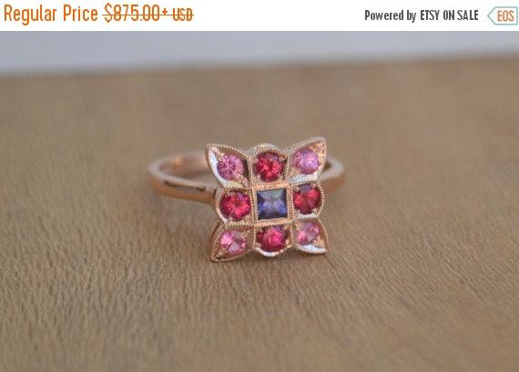 The result is that each of my pieces looks a little different. Pierre tries to get inventive so that the result always looks good, though not usually identical to the previous piece. This 9 stone ring is a perfect example. The center can be round or square, between 2.8 and 3mm. The inner rounds should be 3mm (ish) and the outer closer to 2.5mm. Look at how smaller center and sidestones get more milgrain and beads.