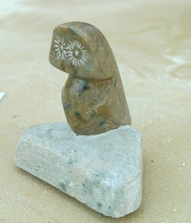 Sonny's tools are very simple, I took a few shots of them so you could see. Just a saw, carving knives, chisels and rasps. After cutting out the basic shape of the owl, he sprays it with a finish that brings out the marbled texture of the stone. The eyes are cut of the owl at the very end. The designs are simple as well, but that's just what I love about them. A few curves and shapes only, but you know exactly what each thing is because its essence has somehow been captured in the stone.