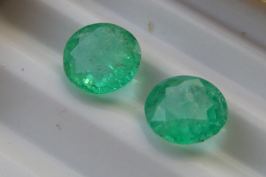 In terms of value, you get what you pay for: a heavily oiled stone has less value than an un-oiled one. Oiling changes the stone somewhat, but not drastically, as you can see here. Other fillers (epoxy and polymers) can achieve more dramatic changes. Those definitely need to be disclosed to the buyer, and if you can, stay away from them. A totally untreated, eye clean and richly colored Columbian emerald of even half a carat should cost you about $500 wholesale, so that gives you an idea. And good luck finding one! The emeralds I have, beautiful and sparkly as they are, all have at least a couple of inclusions that are visible to the naked eye. Some of my low grade cabochons are opaque (but I’ll sell those for much less). Also, the lighter stones, while they have less value in terms of color, are also cleaner and so they have higher brilliance. I prefer the slightly lighter ones for some reason, but this is really a matter of taste.