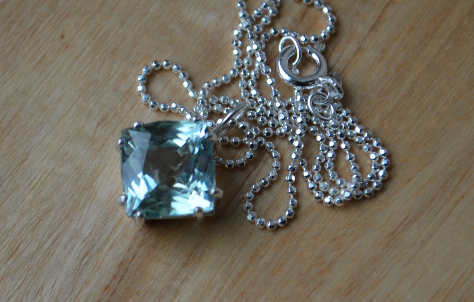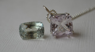 My parcel arrived quickly and checked as spodumene on the refractometer. The price was great, too. I made a couple of pendants right away. Then I went to an outdoor craft fair. A few days later, I noticed that my pretty green gem had faded to a pinkish white, sort of like a very washed out morganite. Someone on Etsy was interested in it, I discouraged the sale to buy myself some time. I asked around. Yes, the stuff can fade, I was told, especially the greens. So I put that in the description, and planned on re-photographing the piece, or just selling it as the pink variety, kunzite, describing it as very light color. Before I got around to it, someone else bought it. I apologized profusely, and reversed the sale upon explaining that this was no longer a necklace with a green gem.