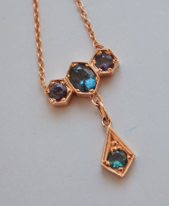 3 Stone Hexagon Eternity Pendant in 14 K Rose Gold with Spinel and Color Change Garnet $499.00 |