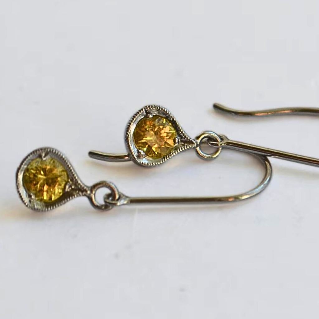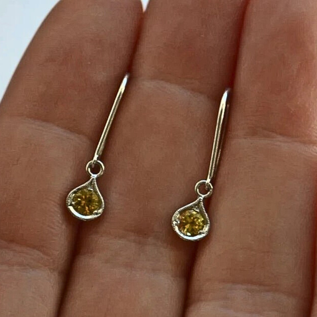 Our petal inspired earrings are pave set and include double millgrain which is completed by hand after casting to provide a more delicate finish. These take 4mm gems but we also have versions for 2mm to 5mm gemstones. These can be set as studs or dangles (French hooks or leverbacks) so please advise us of your preference upon ordering.