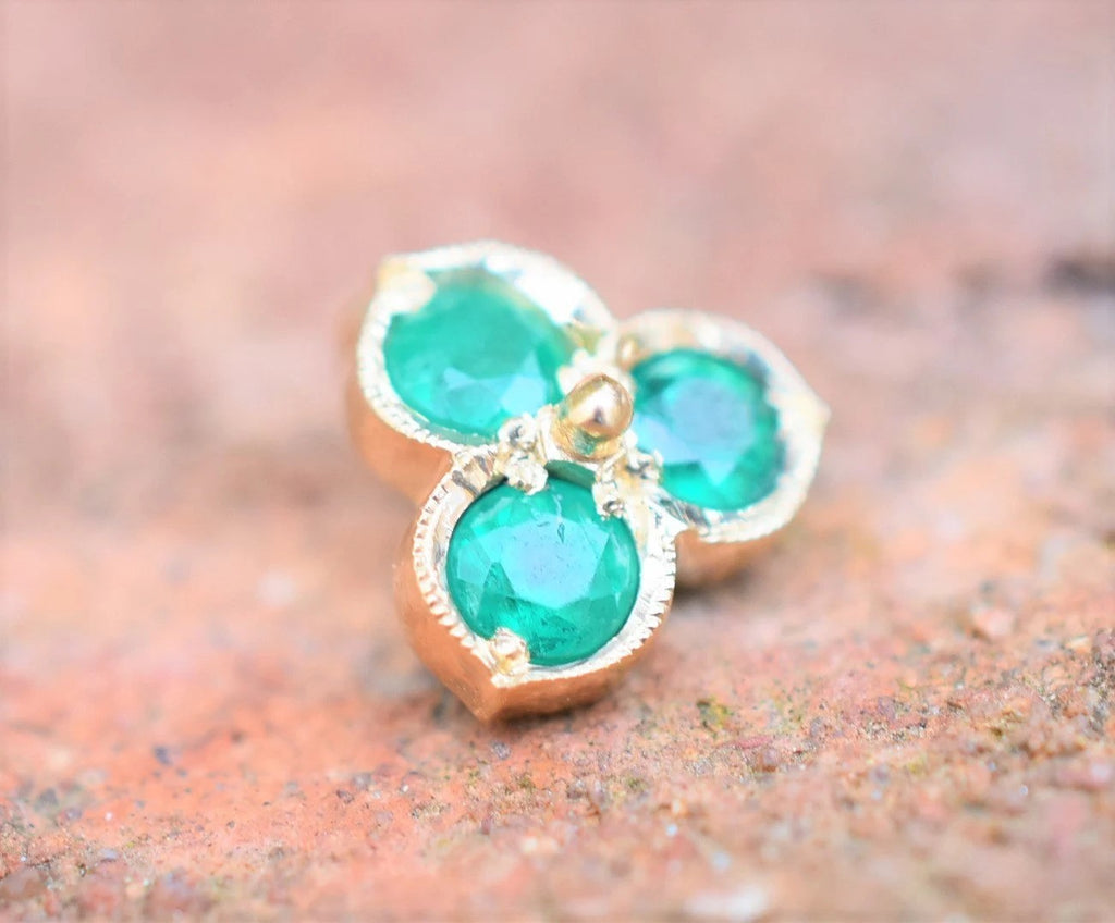 Our delicate Trillium pendant comprises 3 petals, each containing a 3mm gemstone and surrounded by millgrain - this is hand applied rather than part of the casting as it produces a more delicate finish.